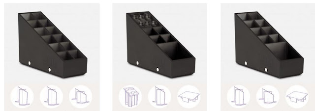 C'est la marque Uniq, fabriquée en France et en Europe, qui propose ces rangements en plastique ultra rigide et quali, et modulables et aimantables. Cette jeune entreprise de design située à Toulouse a voulu offrir aux femmes des rangements comme il en existait pour les professionnels. Il existe plusieurs unités, ou des pack prédéfinis, pour composer son rangement de maquillage idéal. Pour ma part, je l'ai joué classique dans ma commande, avec une unité lèvres, une unité yeux, et une unité visage. Chacune de ces unités vient s'aimanter à la précédente à l'aide de deux aimants placés vers la base, comme on peut le voir sur les photos. Il existe aussi des unités vernis à ongles, ou rouges à lèvres etc.